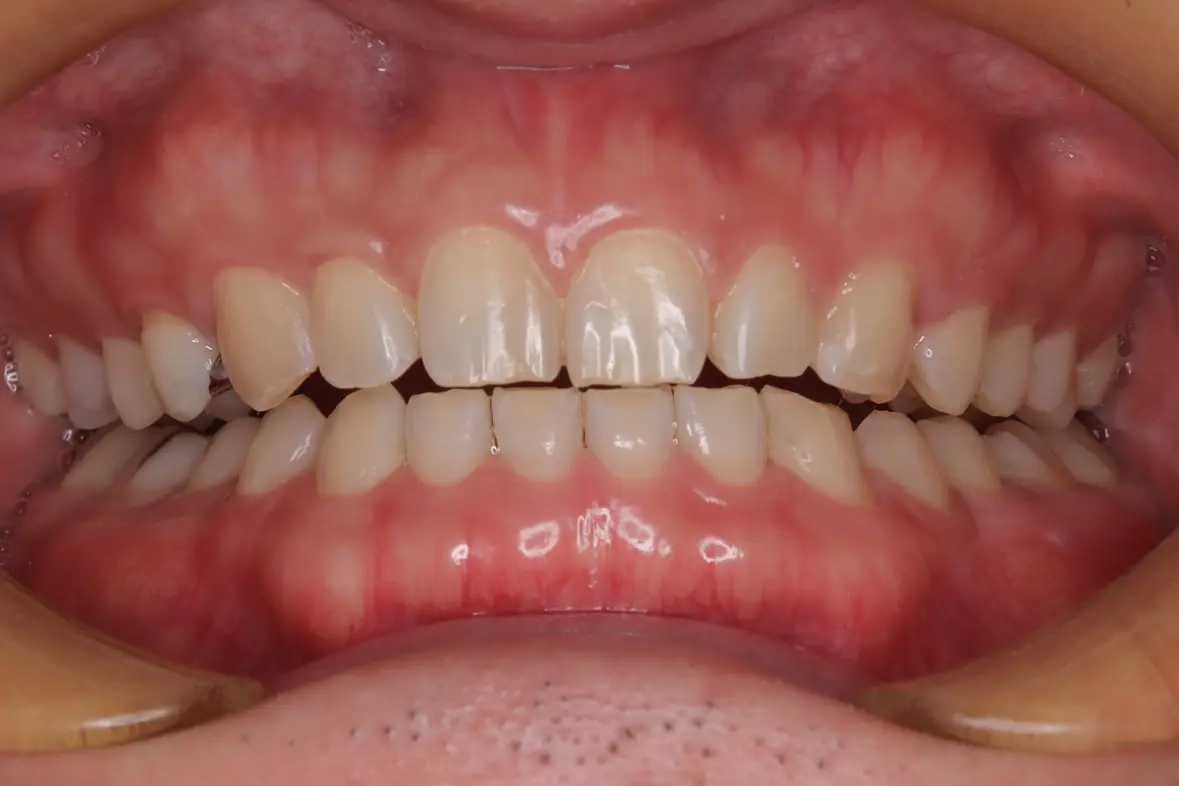 マウスピース矯正後の黄ばみを気にされている男性のオフィスホワイトニング後の変化