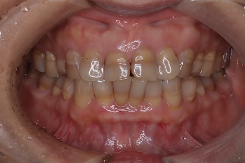 テトラサイクリン歯による着色が見られる40代の女性