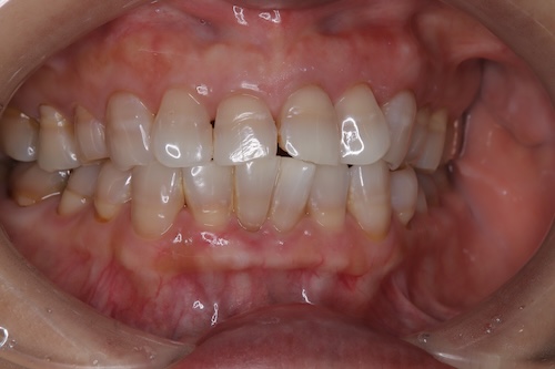 テトラサイクリン症例のため、あらかじめ、色の差は残ることや、真っ白にはならないことをお伝えし、完成のイメージに大きな差がないように、初診カウンセリング時に時間をかけて症例を用いてご説明することを心がけました。